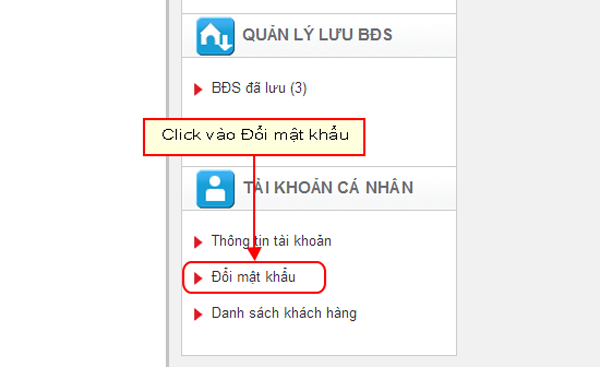 Sau khi đăng nhập vào tài khoản, click mục "Đổi mật khẩu" (Xem hình).