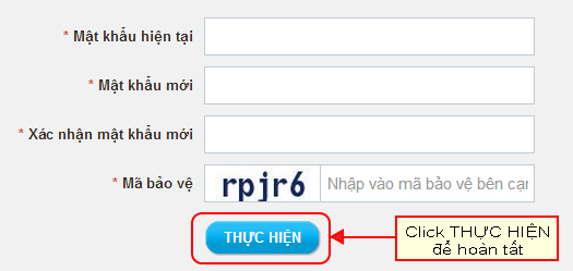 Xác nhận mật khẩu cũ và nhập mật khẩu mới, click "Đổi mật khẩu" để hoàn tất (Xem hình).