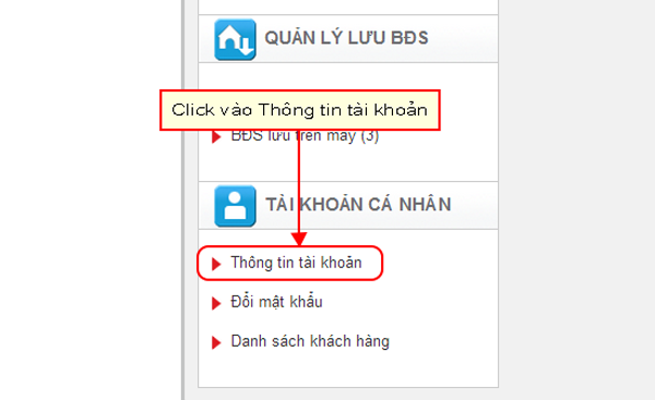 Đăng nhập, click vào "Vào trang thành viên", tại đây bạn chọn mục "Thông tin tài khoản".