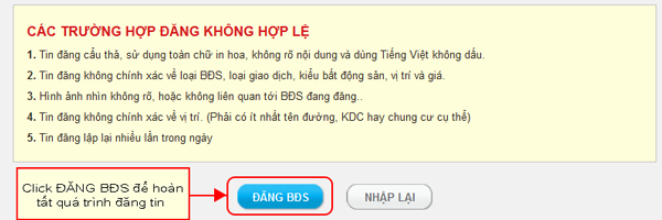 - Khi đăng tin, bạn làm đúng theo hướng dẫn và tuân thủ những quy định sau thì tin sẽ được duyệt nhanh chóng