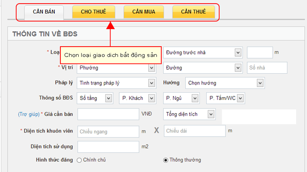 3. Hướng dẫn đăng loại giao dịch BĐS cần bán/ cho thuê