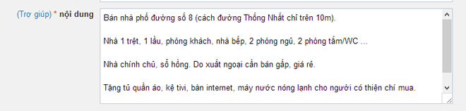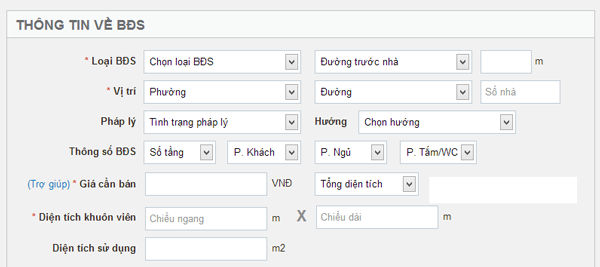 - Khi đăng tin, các mục có dấu * là bắt buộc phải điền nội dung.