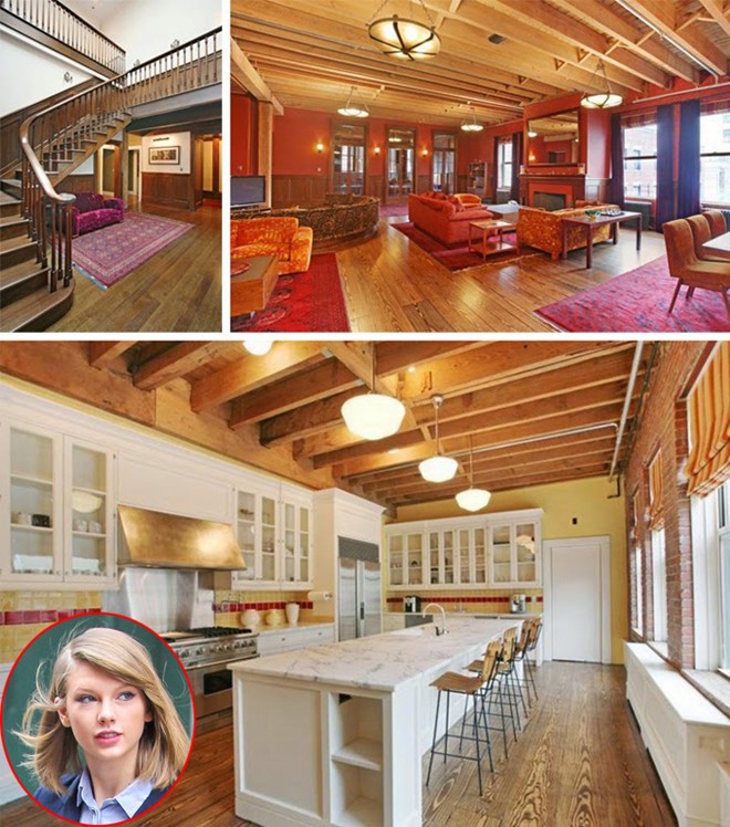 Năm nay, Taylor Swift tiếp tục lọt top những ngôi sao có thu nhập cao nhất làng giải trí theo Forbes thống kê. Hiện tại, nữ ca sĩ đang ở căn hộ áp mái trong khu TriBeCa, New York. Căn penthouse này được mua về với giá gần 20 triệu USD là nơi Taylor thường xuyên tổ chức tiệc tùng với bạn bè. Hàng xóm của nữ ca sĩ là vợ chồng Beyonce – Jay Z.