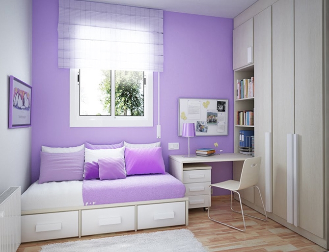 Giấy gián tường và gối màu tím là màu chủ đạo hợp với người mệnh lý hỉ Hoả.