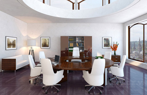 Nếu phòng rộng, phía trước vị trí sếp ngồi nên để bàn tiếp khách đơn giản. Chiếc bàn này giúp sếp ngồi trao đổi nhanh tối đa với 5 người. Ngoài ra, phòng của sếp thường có view nhìn khá đẹp. Trong building, view thường không bị che chắn tầm nhìn hoặc hướng ra khoảng không mênh mông như hồ nước, công viên xanh mát. Ánh sáng trong phòng làm việc vừa đủ, giúp sếp tập trung suy nghĩ.