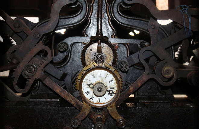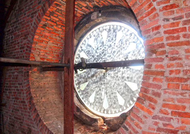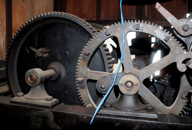 Bộ máy đồng hồ to như một chiếc tủ chứa quần áo loại lớn, cao khoảng 2,5 m, dài khoảng 3 m và ngang độ hơn một mét.