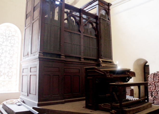 Giữa hai ngọn tháp, đối diện bàn thờ chính của ngôi thánh đường là gác đàn. Tại đây đặt một chiếc đàn organ ống, được cho là một trong hai cây cổ nhất Việt Nam hiện nay. Nó được các chuyên gia nước ngoài làm thủ công, thiết kế riêng để âm thanh đủ cho cả nhà thờ nghe, không nhỏ mà cũng không ồn. Phần thân đàn cao khoảng 3 m, ngang chừng 4 m, dài 2 m chứa những ống hơi bằng nhôm đường kính khoảng 10 cm.