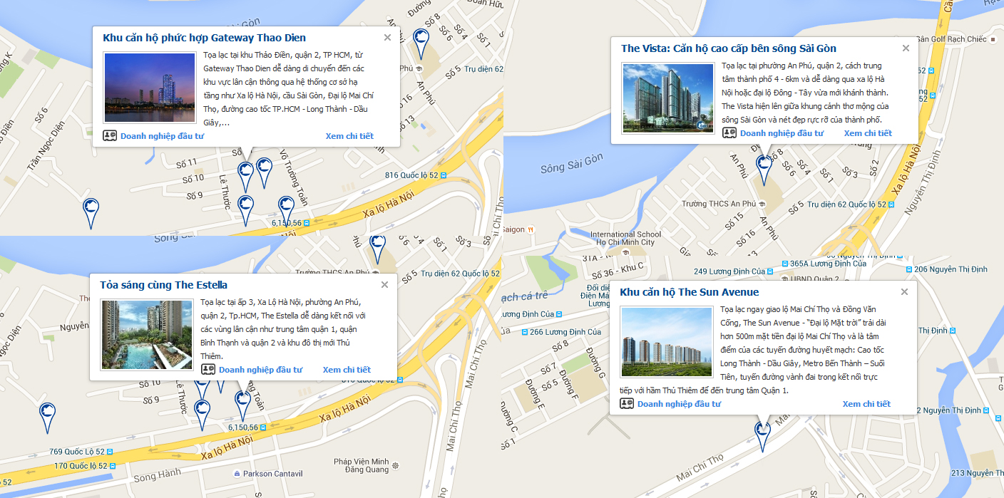 Vị trí 4 dự án nổi bật tại quận 2 trên bản đồ cafeland.vn
