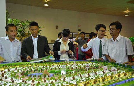 Thị trường BĐS có dấu hiệu hồi phục trở lại, giá nhà, đất nhích dần lên. Trong ảnh: Khách hàng đang tìm hiểu thông tin căn hộ. Ảnh: QUANG HUY