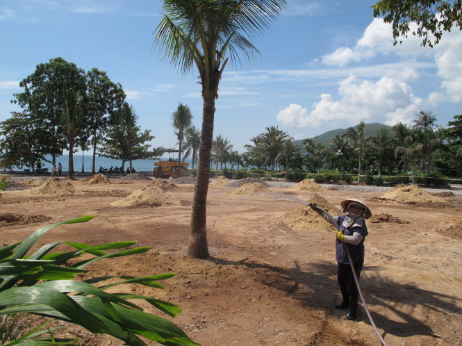 Sáng 28-9, ông Đỗ Đình Phương, giám đốc Công ty cổ phần Công viên, cây xanh và chiếu sáng đô thị Quy Nhơn, Bình Định, cho biết đơn vị đang tiến hành san ủi mặt bằng, trồng cây xanh trên khu đất "vàng” nằm dọc công viên An Dương Vương thuộc phường Nguyễn Văn Cừ, TP Quy Nhơn để làm công viên, điểm để xe công cộng miễn phí.