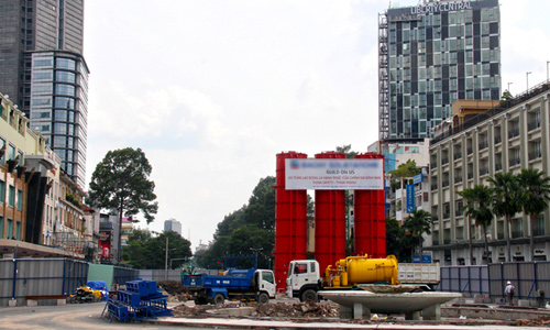 Tuyến metro đầu tiên dự kiến hoạt động vào năm 2020 đã ảnh hưởng tới giá bất động sản bán lẻ, song chưa tác động lên giá thuê văn phòng hiện nay. Ảnh: Hữu Công